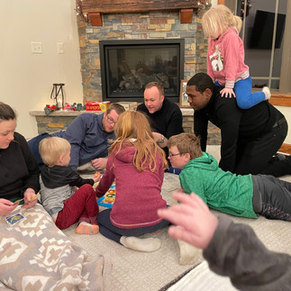 We spent Sunday going to Grandma & Grandpas church with all of the family. Then enjoyed a nice meal out before Aunt Rachel, Uncle Tim & family headed home. We got together one more time for supper on Sunday night. We enjoyed Casey's pizza, board games and cookie decorating while Uncle Darrin and Romelle were still home.